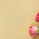 The embosser features a beautifully crafted round typography with your custom name and flowery decorations in the center.