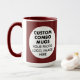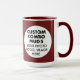 Round MAROON double image frame Large custom Combo Mug for photo or logo, 15 oz., 3.4" diameter x 4.5" high, with MAROON background double image frame (two individually customizable design areas) providing maximum coverage of the mug in MAROON. See store for more template options. The background color has been chosen to closely resemble the combo mug inside and handle color but may not match exactly, due to the difference between printing and enamel tones.