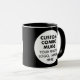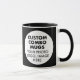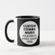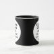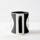 Round BLACK double image frame custom Combo Mug for photo or logo, 11 oz., 3.2" diameter x 3.8" high, with BLACK background double image frame (two individually customizable design areas) providing maximum coverage of the mug in BLACK. See store for more templated font options. The background color has been chosen to closely resemble the combo mug inside and handle color but may not match exactly, due to the difference between printing and enamel tones.