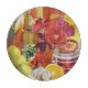 Gorgeous round glass cutting board to serve cheese or put at your bar for lemons and limes. Beautiful culinary design in vivid yellow and oranges with wine, cheese and a mason jar of fruit. This is a wonderful wedding party gift, bridesmaids or groomsmen favors, hostess gift or for yourself. Design by artist, Robin Frazier.