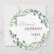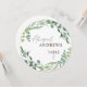 Floral design featuring watercolor greenery and eucalyptus foliage. This guest place card is perfect for a rustic or boho-themed wedding or other special event. This template is perfect for creating personalized round champagne table cards.