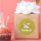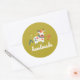 Round handmade product label sticker with illustrations of cows and flowers. Illustrations of flowers and simple shapes in a Scandinavian cozy style.