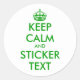 Round KeepCalm Stickers in grey | personalizable. Customizable Keepcalm template with custom background color and text. Vintage Keepcalmandcarryon theme with crown. Create your own keep calm parody.