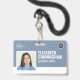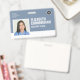 A modern and simple badge that does not distract from the important details. Easy to read from afar. Add a custom logo and company/hostpital/clinic details. Add the employee's name, photo, and professional title. The bar of color can be modified to match the company's official colors. At the back, add more information such as return address and the employee's ID number. Perfect for round shaped logos.