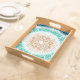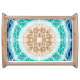 Round Ocean Waves Teal and Turquoise Mandala Serving Tray