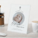 A modern, minimal Baptism Invitation featuring a round photo and the word 'Baptism' in a calligraphy style font. Please note that you cannot change the 'Baptism' word but you can edit all of the other text in this design.