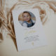 A modern, minimal Baptism Invitation featuring a round photo and the word 'Baptism' and cross are printed in real gold foil. Please note that you cannot change the 'Baptism' word but you can edit all of the other text in this design.