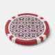 Round poker chip with a floral pattern on both sides. The design features purple and pink flowers with green leaves on a beige background, framed by red and white segments.
