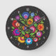 Unique folklore composition with beautiful cut-out style flowers inspired by folk art Wycinanki from Lowicz Round Clock. Cute as a gift for folk loving person.