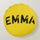 Yellow and black Round Scribbles Kid's Decor Pillow. Playful, fun design for a child's bedroom or playroom. Keep the name or monogram option or use the double-sided pattern option. Change the background color for a custom look. Be unique!