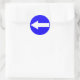 Round sticker with arrow to left