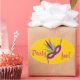Mardi Gras festive purple mask with the look of blue feathers above the eyes, and colorful feathers on top of mask in blue, red, yellow, green, orange would make for a fun festive touch to the back of your Masquerade Party or Birthday Party invitations and thank-you envelopes. Shown on an oval shape with orange background. Click Personalize to change background color. Transparency set for whites via wheel options. Original Artwork by TamiraZDesigns.