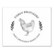 Beautiful vintage-style egg carton stamp personalized with your family farm or homestead information. The design features a vintage image of a chicken in the center and a vintage-style round typography.