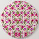 Round wall clock with a vibrant floral design button