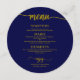 Round Wedding Menu Simple Elegant Gold Navy Blue