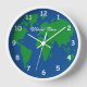 Round world map wall clock. Novelty planet earth design with map of continents. Cool decoration for kitchen, office, school, class room, library, waiting room, restaurant, living room, hotel, airport, shop, man cave, hall, diner, cafe, pub, bar, bedroom etc. Stylish script typography. Add your own personalized text. Unique gift idea for friends, family, teacher etc.
