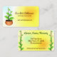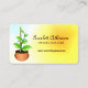 © Sunny Mars Designs. Growing Vine in Terracotta Pot Plant Nursery Business Cards - This nursery business card template features a vine growing against a brown bamboo stick in a terracotta pot against a yellow background. The back of the card features the same plant growing on a bamboo stick.