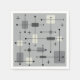 This atomic-age inspired mid century modern design has bold lines and geometric shapes in shades of gray.