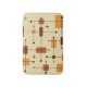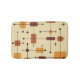 This atomic-age inspired mid century modern design has bold lines and geometric shapes in shades of orange and yellow