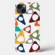 This phone case has a mid-century modern design of scattered triangles in retro colors with holes.
