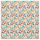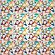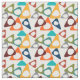 This fabric has a mid-century modern design of scattered triangles in retro colors with holes.