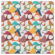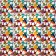 This fabric has a mid-century modern design of scattered triangles, some with holes, in retro colors.