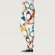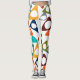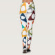 These leggings have a mid-century modern design of scattered triangles in retro colors with holes.
