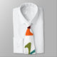 This necktie has a mid-century modern design of scattered triangles in retro colors with holes.