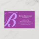 The initial of your surname appears in a huge bold light purple letter on the left of this business card over a purple background, while your contact details appear on the right. This two-toned design is simple, minimalist, professional and generic, suitable for almost any type of business or industry.