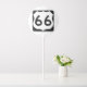 This design features the public-domain US Route shield for Highway 66 (also known as Will Rogers Highway, the Main Street of America or the Mother Road), which was was one of the original highways in the United States Highway System. Route 66 was established on November 11, 1926, with road signs erected the following year. It has become one of the most famous roads in the United States, often referenced in popular culture.