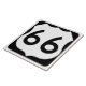 This design features the public-domain US Route shield for Highway 66 (also known as Will Rogers Highway, the Main Street of America or the Mother Road), which was was one of the original highways in the United States Highway System. Route 66 was established on November 11, 1926, with road signs erected the following year. It has become one of the most famous roads in the United States, often referenced in popular culture.