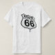 Historic Route 66 sign. It looks as if you are in a car driving by.