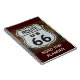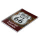 Photograph of US Route 66 shield on wood building with text "Road Trip Planner" (customizable) printed below. Photograph by Hans Braxmeier.