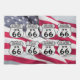 Red white and blue colors of the American flag accent the Route 66 state signs.