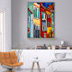 This print features an abstract image of colorful urban row houses. This modern art poster features shades of green, red, orange, yellow, and blue. Perfect for any room, this vibrant print is especially well suited for rooms with a contemporary or modern aesthetic.