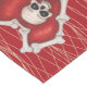 This table runner is dark red with a white spiral line pattern and a row of Gothic red hearts outlined with bones with skulls in the center of the hearts.