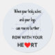 You have reached that moment when your legs are in agony, your body screams "Stop!" but your brain says "No! The race isn't over yet!" That's the moment to dig deep and row from your heart. The inspirational text is in black with a red heart, and there is a pale blue background with the silhouette of a rowing eight.