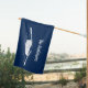 This navy blue flag has a horizontal layout, and is perfect for your lake house with its illustration in white of a rowboat on the water. Your name or other text appears above the graphic in white script lettering.