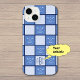 Oar inspiring. This personalized phone case is ready for customization: just enter the initials you require to create a 3-initial monogram in dark navy. The design is in shades of blue, created for a keen oarsman or oarswoman with crossed oars and the punning caption "OAR INSPIRING".