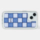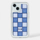 Oar inspiring. This personalized phone case is ready for customization: just enter the initials you require to create a 3-initial monogram in dark navy. The design is in shades of blue, created for a keen oarsman or oarswoman with crossed oars and the punning caption "OAR INSPIRING".