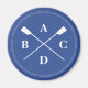 A smart navy and white magnet for a keen rower, this has space for you to enter four initals. The design displays crossed oars with a double 'stitched' white circle around them, on a navy blue background.