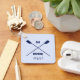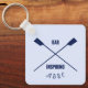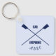 A keychain with a fun slogan, for anyone who enjoys rowing or sculling. Awe-inspiring with crossed blades in navy, on a pale blue background. Personalize by adding your initials.