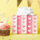 Rows of hearts in white, pink and red, over stripes of the same colors. A very playful design to give the same feeling of play and joy to your day.