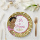 Royal African Princess Pink and Gold Glitter Fancy Paper Plates