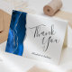 This elegant modern wedding thank you card features a royal blue watercolor agate border trimmed with faux silver glitter. The customizable text combines the words "Thank You" in charcoal gray handwriting script and the names of the bride and groom in italic font on a white background.