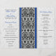The text on this elegant royal blue and black damask wedding program is fully customizable. It is intended to be folded down the middle when you receive it. To change the text, use the personalize option. For more extensive changes, such as changes to the font, font color, font size, or text layout, use the customize it option. Once your text is finalized, if you need to move it around a bit, you can do that using the customize it option. This damask special occasion program is currently customized as a wedding program, but it would work well as a program for other special occasions as well. Really, this would even make a really nice church bulletin with changes to the text. Let your imagination lead you. It is recommended this is only purchased as a standard 80lb matte finish. The 100lb paper option is difficult to fold and therefore not recommended.