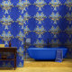Royal Blue and Gold Arabesque Ornamental Pattern Wallpaper