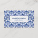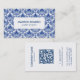 Experience the charm of a stunning vintage floral damask pattern in regal royal blue and crisp white, artfully enhanced with a QR code for modern convenience.