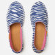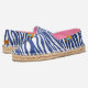 It’s been affectionately named Afridrille because it's inspired by the Spanish espadrille style, but it’s 100% made in Africa. The shoe retains the look and feel of the espadrille while weaving in the local African flair through unique custom designs, indigenous African patterns, and the kanga fabric (a colorful triangle garment worn throughout East Africa).
