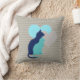 Two cat silhouettes, one aqua, the other royal blue, and two hearts of gray and aqua on a chevron striped gray background. This pretty cat design throw pillow is perfect for anyone who loves cats, looks great in the bedroom, living room, rec room, playroom!